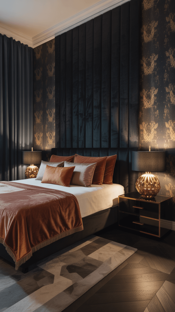 - Key Takeaway: If a full velvet wall feels like too much, incorporate velvet through your bedding or an accent chair to get a taste of the luxury without the permanent install.
