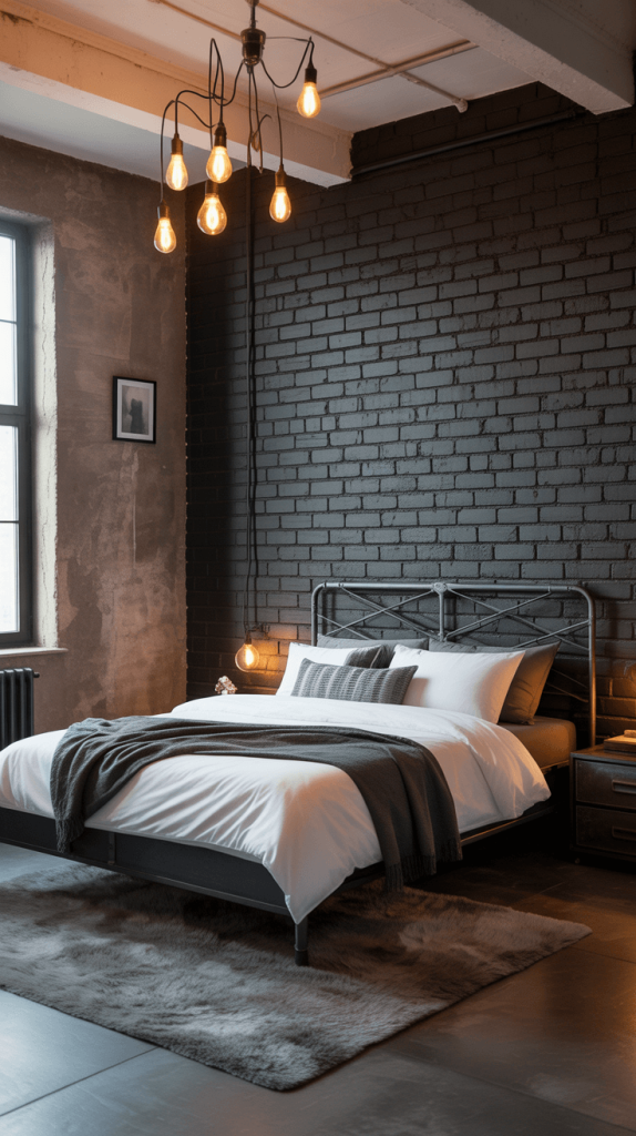 - How to Nail It: Your black wall here could be actual black-painted brick, concrete paneling, or even a dark, textured plaster finish. Pair it with metal bed frames (iron or black pipework are perfect), Edison bulb lighting, and utilitarian furniture. Think function over frill.