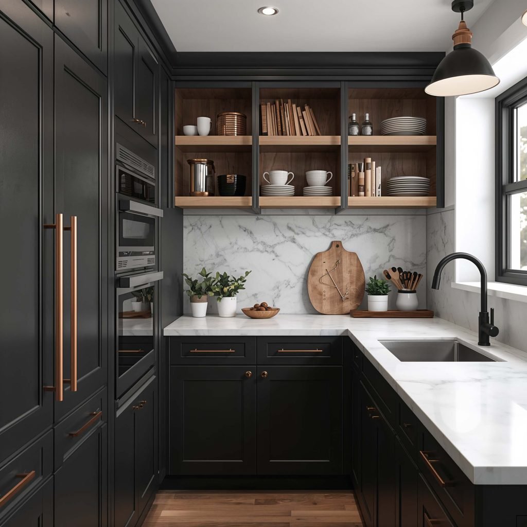 Modern kitchens thrive on clean lines and minimalist vibes, and nothing says “I have my life together” quite like a sleek black and copper design. Picture this: matte black cabinets stretching from floor to ceiling, interrupted only by the warm gleam of copper handles and fixtures. The contrast creates visual interest without screaming for attention.