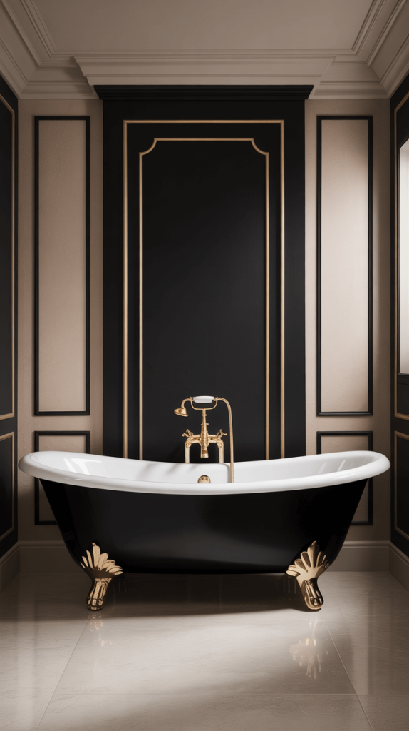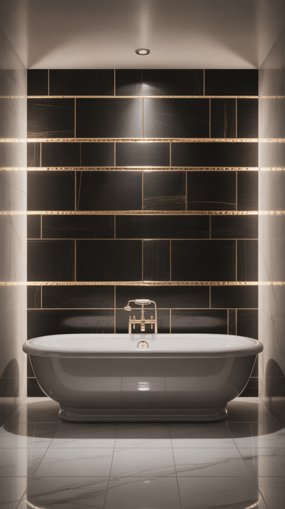 Painting one wall—behind the vanity or the bathtub—in a rich, deep black (or even a very dark charcoal) creates instant, incredible drama.
