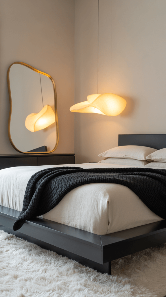 My personal take? I went with a matte black bed frame and then found this incredible, asymmetrical gold pendant light that hangs over my bedside table. It’s the one piece everyone comments on, and it totally makes the room. FYI, matte finishes are having a major moment over high-gloss right now. They feel more contemporary and less fingerprint-prone 🙂