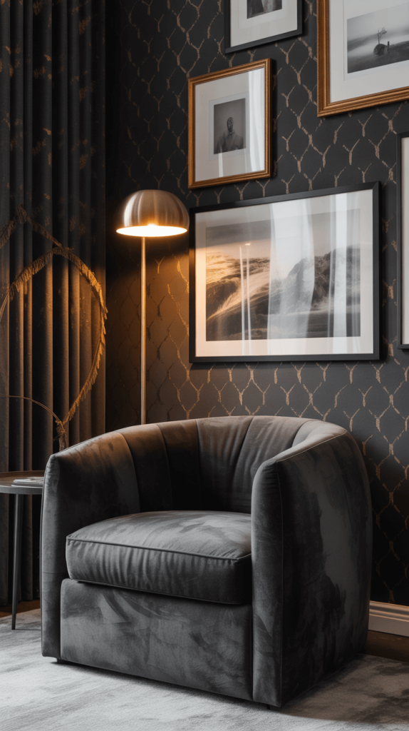 - Wood Paneling: Paint or stain wooden slats or shiplap in a matte black and install them on your accent wall. The lines of the wood add incredible texture and a modern, tailored look.