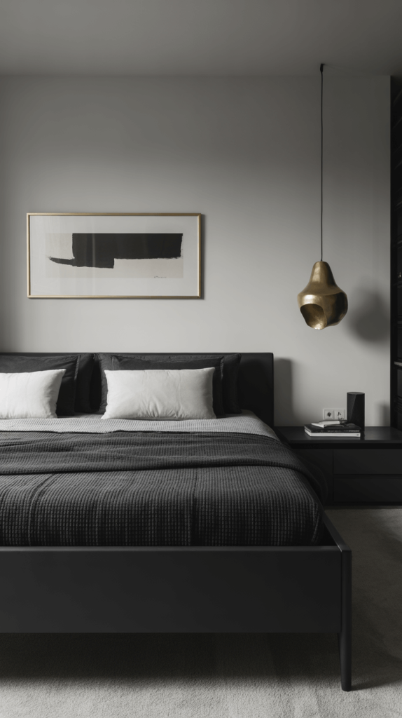 - Focus on Quality Over Quantity: Choose one perfect black bed frame, one stunning gold light fixture, and one piece of art. Make sure each piece is beautifully designed and functional.