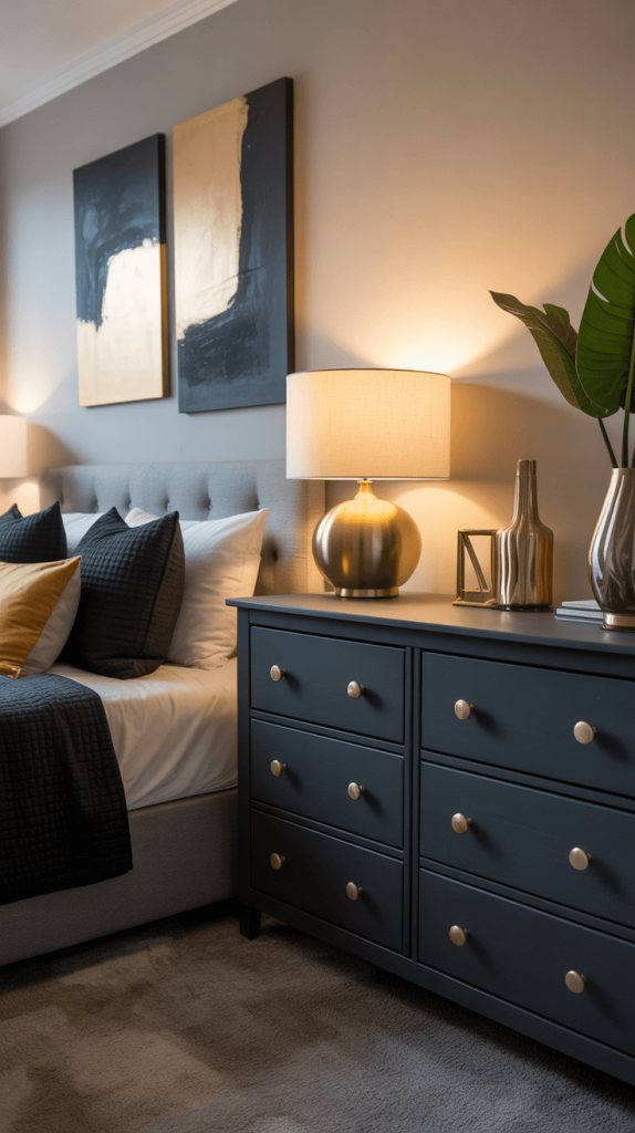- Gold Decor Accents: Now, sprinkle in the gold. Gold picture frames, gold candle holders, a gold table lamp, gold hardware on your existing dresser (a super easy DIY!), a gold vase. This layered approach feels collected and personal over time.