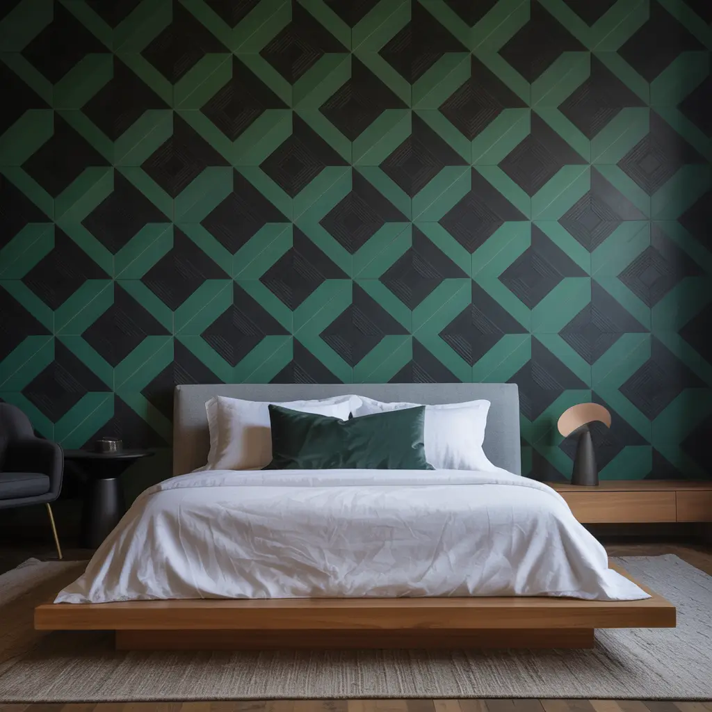 Consider a black wall with oversized tropical leaf wallpaper, or create a living wall with real plants against a black backdrop (okay, this one requires commitment and a green thumb). Geometric murals using varying shades of green against black create incredible visual impact. I once saw a bedroom with a black wall featuring hand-painted monstera leaves in metallic green—absolutely stunning.
