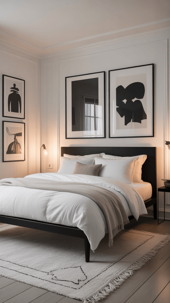 A minimalist black and white bedroom is the ultimate expression of calm and intention.