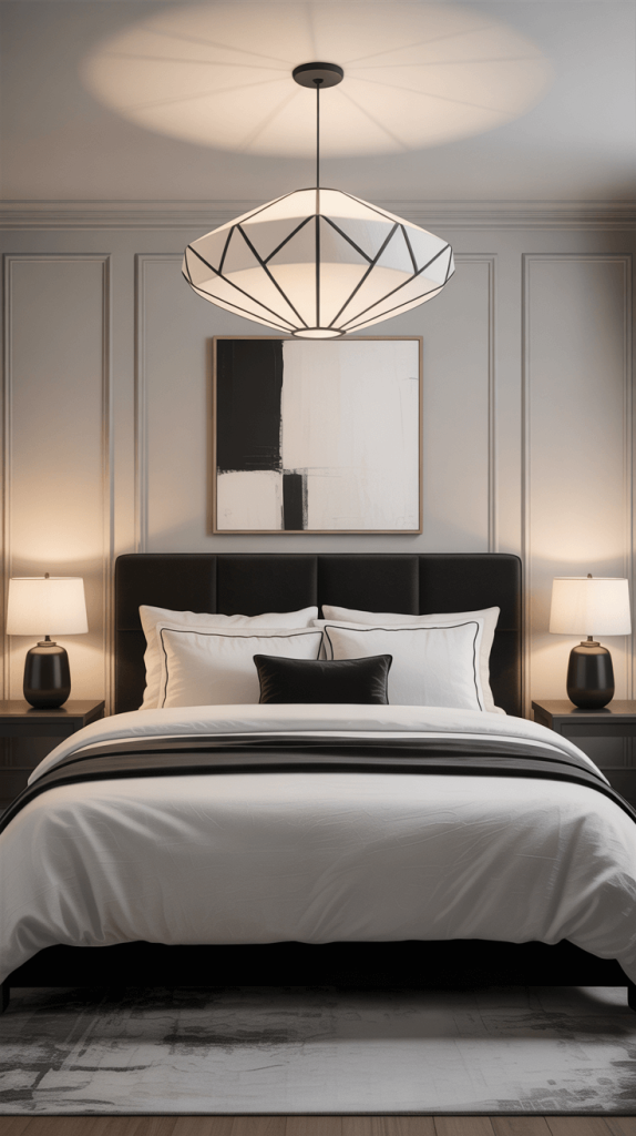 Lighting can completely change the vibe of a room, and black and white lighting fixtures can add a stylish touch to your bedroom.
