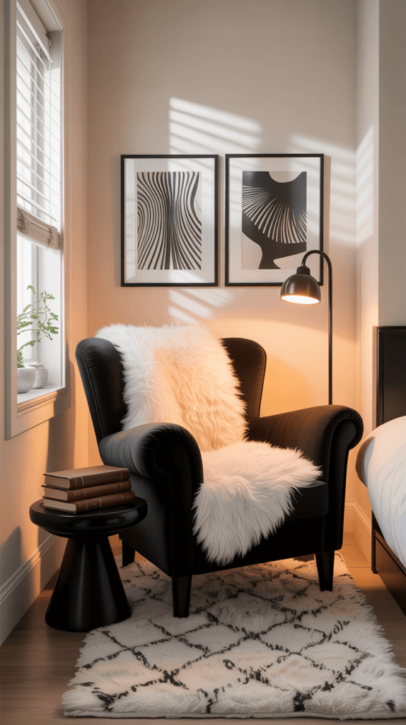 The “white accents” part is crucial here. You don’t want your beautiful black furniture to just sit there like a gloomy monolith.