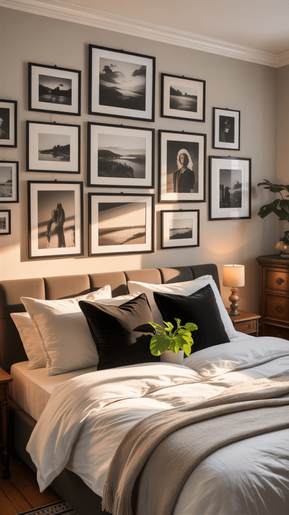 A gallery wall of your own black and white family photos, vacation snapshots, or even your own amateur photography is the ultimate way to make the space yours.