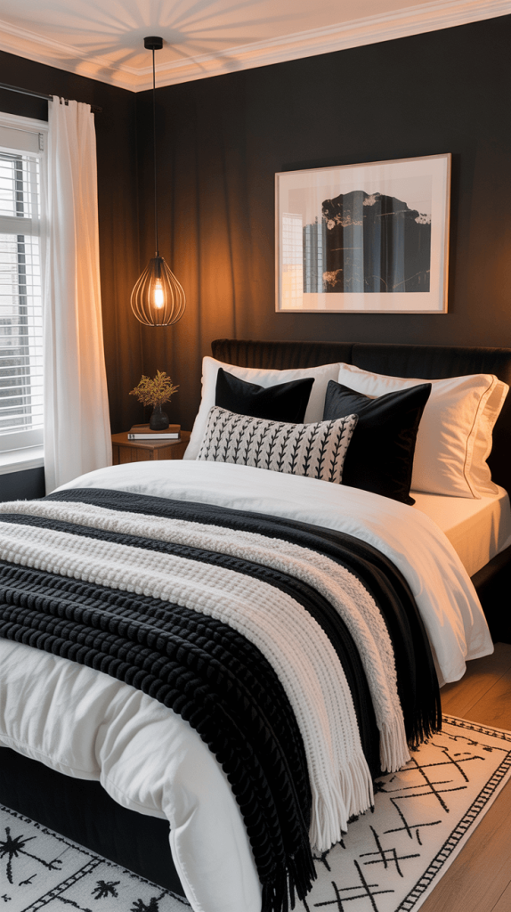 3. Use Black and White Bedding for a Cozy Yet Sleek Vibe