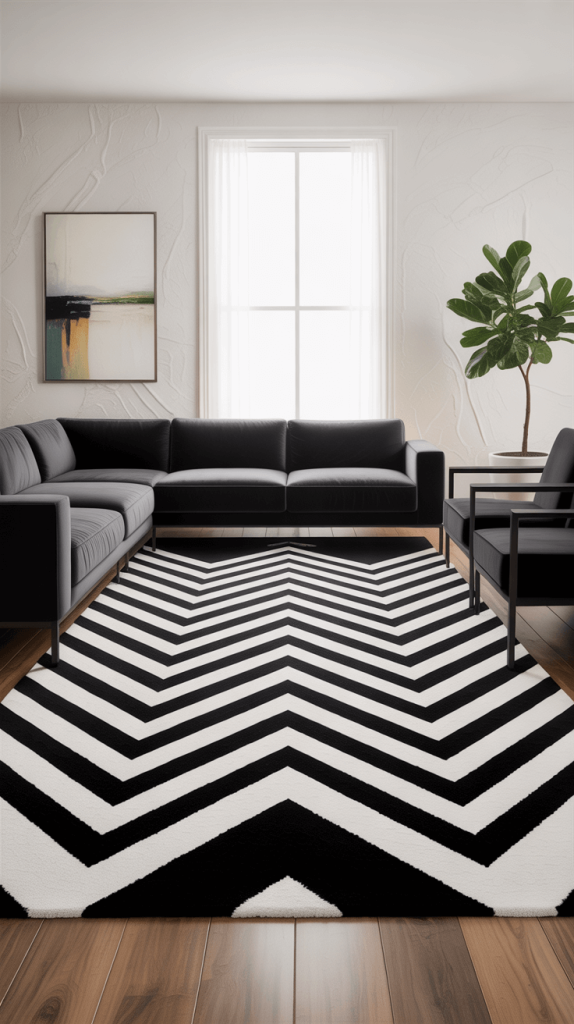 - The Graphic Pattern: Think bold stripes, checkerboards, or intricate Moroccan-inspired designs. A patterned black and white rug does the talking for you. Pro tip: if your rug is loud, keep your furniture and walls more subdued.