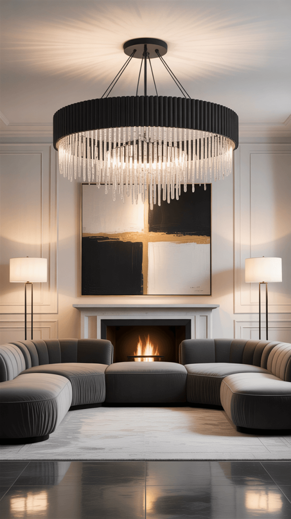 A sleek black sputnik chandelier adds a mid-century modern vibe, while a black crystal chandelier adds a touch of glamorous drama.