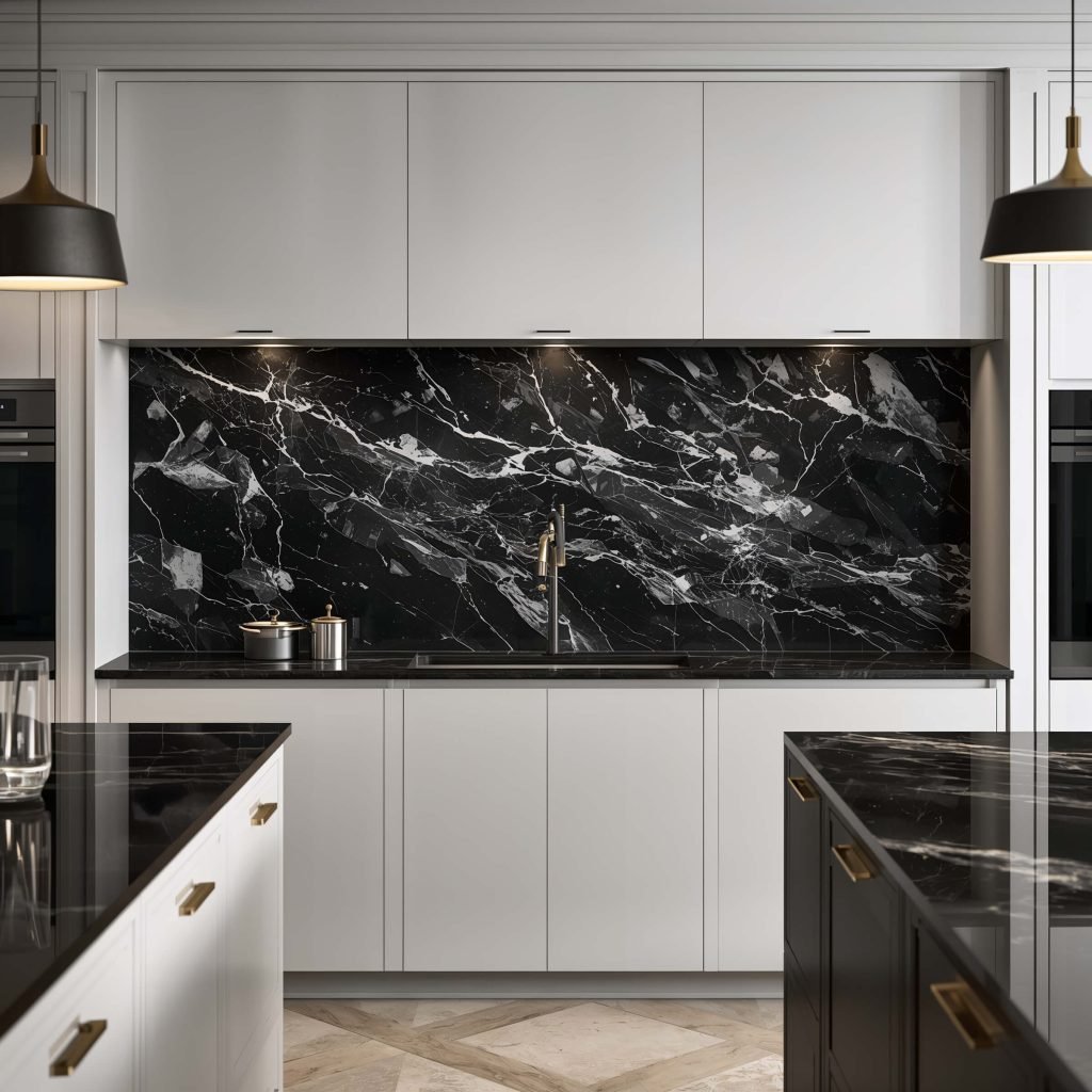 I installed a Nero Marquina marble backsplash in my own kitchen last year, and every single person who walks in asks about it. The natural veining in black marble creates this incredible depth that you just can’t get with regular tiles. Sure, it’s pricier than other options, but IMO, it’s worth every penny.