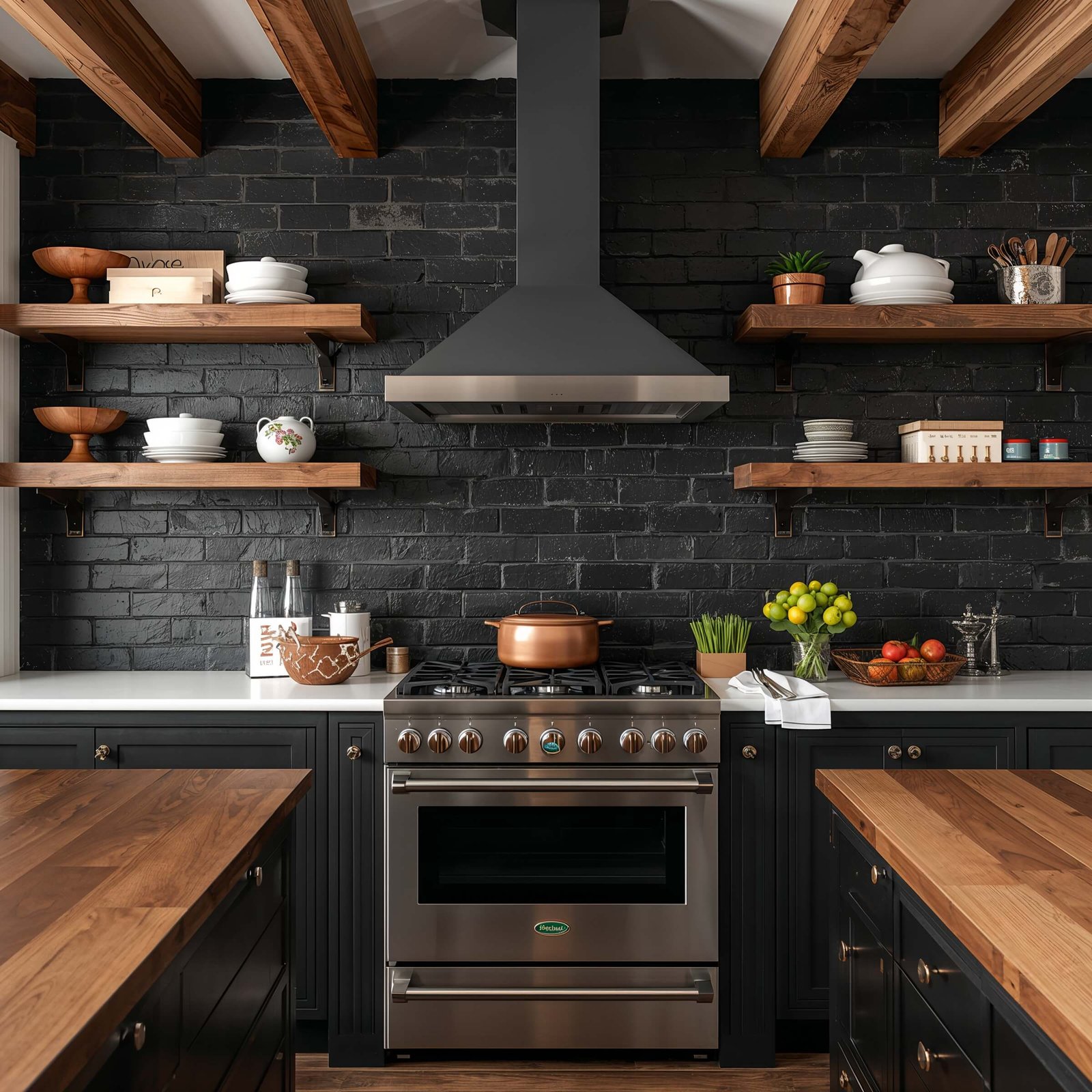 - Reclaimed black brick: Instant character and history