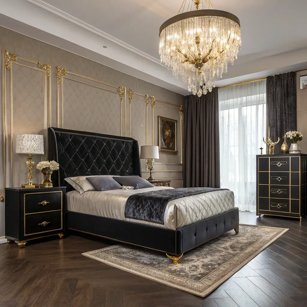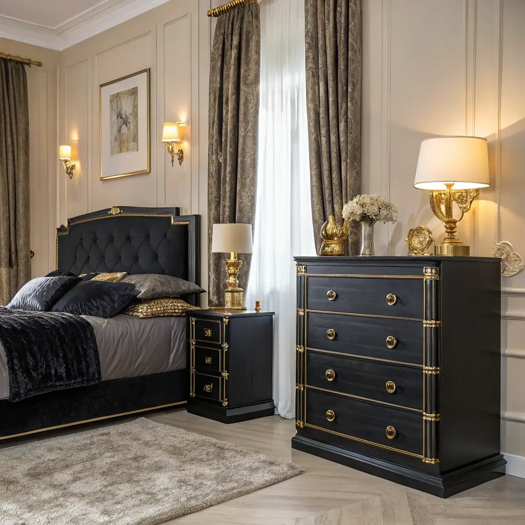 Black Bedroom Furniture with Gold Accents