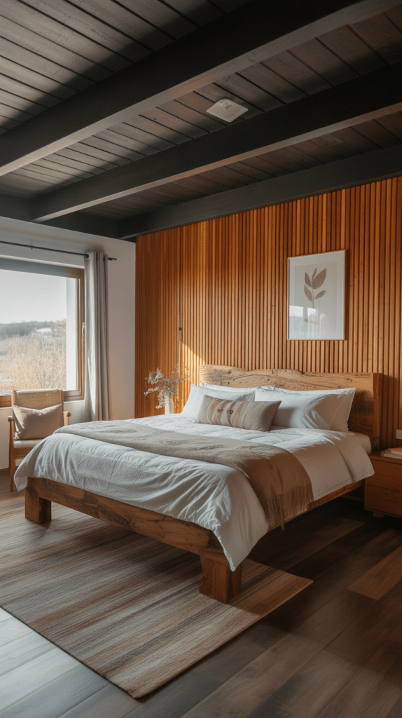 - Rustic Furniture: A live-edge wood nightstand or a chunky, reclaimed wood bed frame keeps the space feeling grounded and warm.