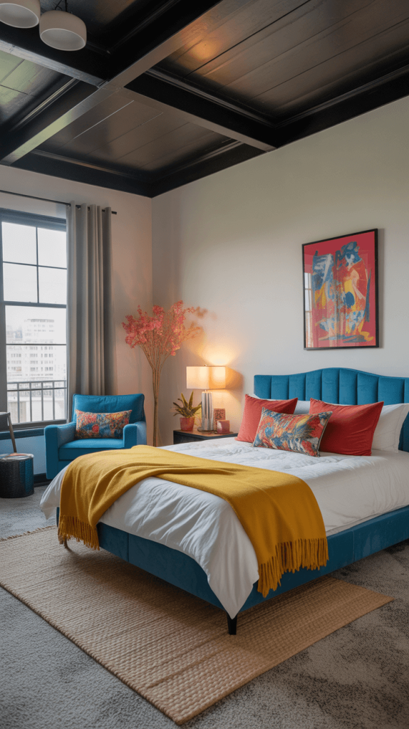 - Keep the Base Neutral: For this to work, your large elements (walls, floor, large furniture) should be neutral (white, gray, beige, wood). This lets the black ceiling and colorful pops do all the talking.