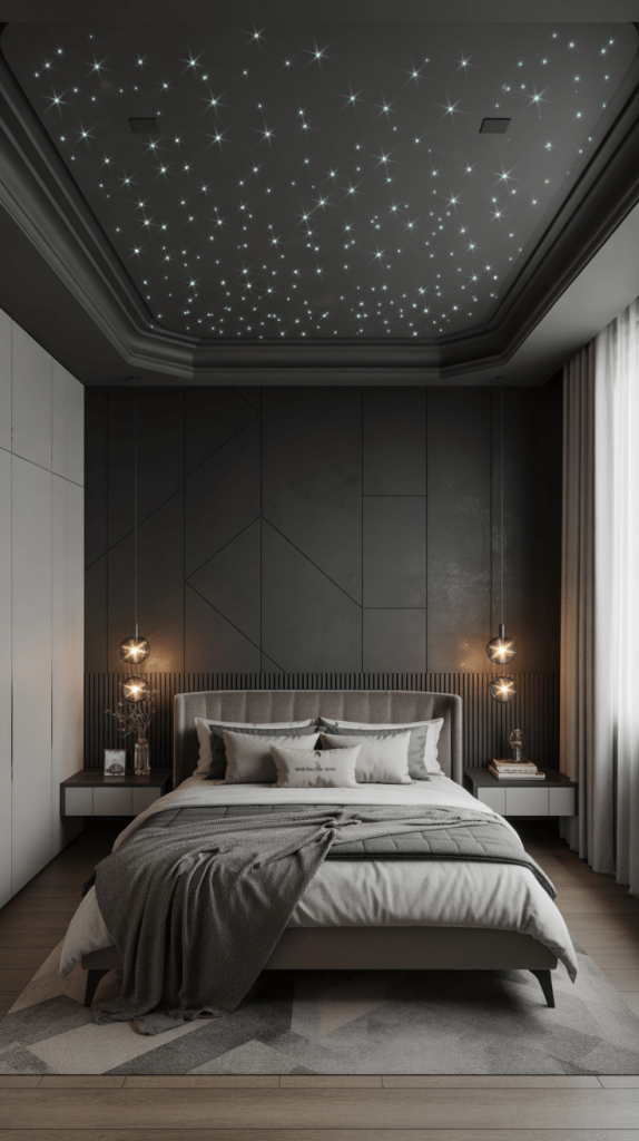 - A Starry Night Sky: Okay, hear me out—and maybe invest in a fiber optic kit to create a subtle starry night effect on your black ceiling. It’s whimsical, magical, and honestly, pretty awesome for a kid’s room or a fantasy-loving adult. 🙂