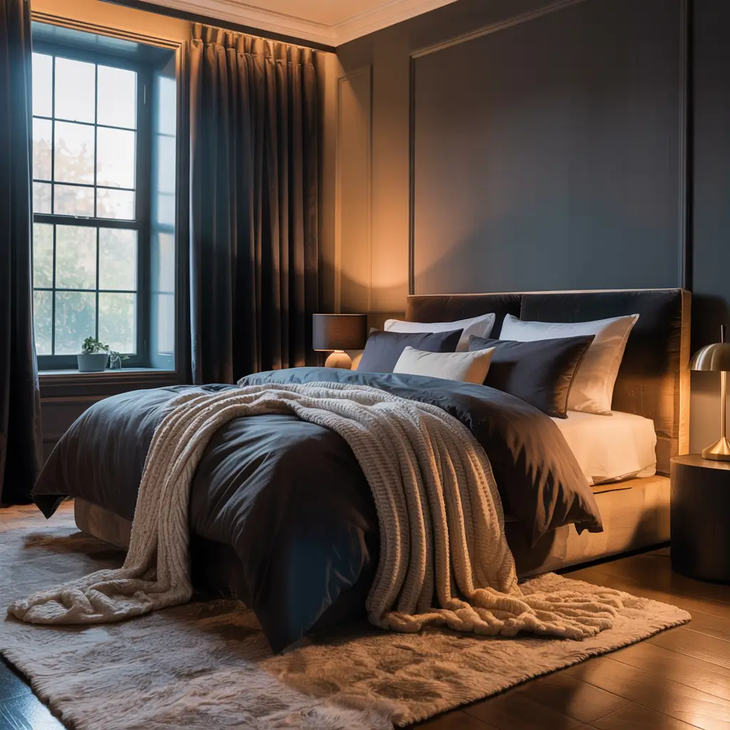 Picture this: charcoal gray walls, black curtains pooling slightly on the floor, warm amber lighting from bedside lamps, and layers upon layers of soft textures. Sounds dreamy, doesn’t it? This approach works especially well if you’re a night owl or someone who values their sleep above all else (guilty as charged).