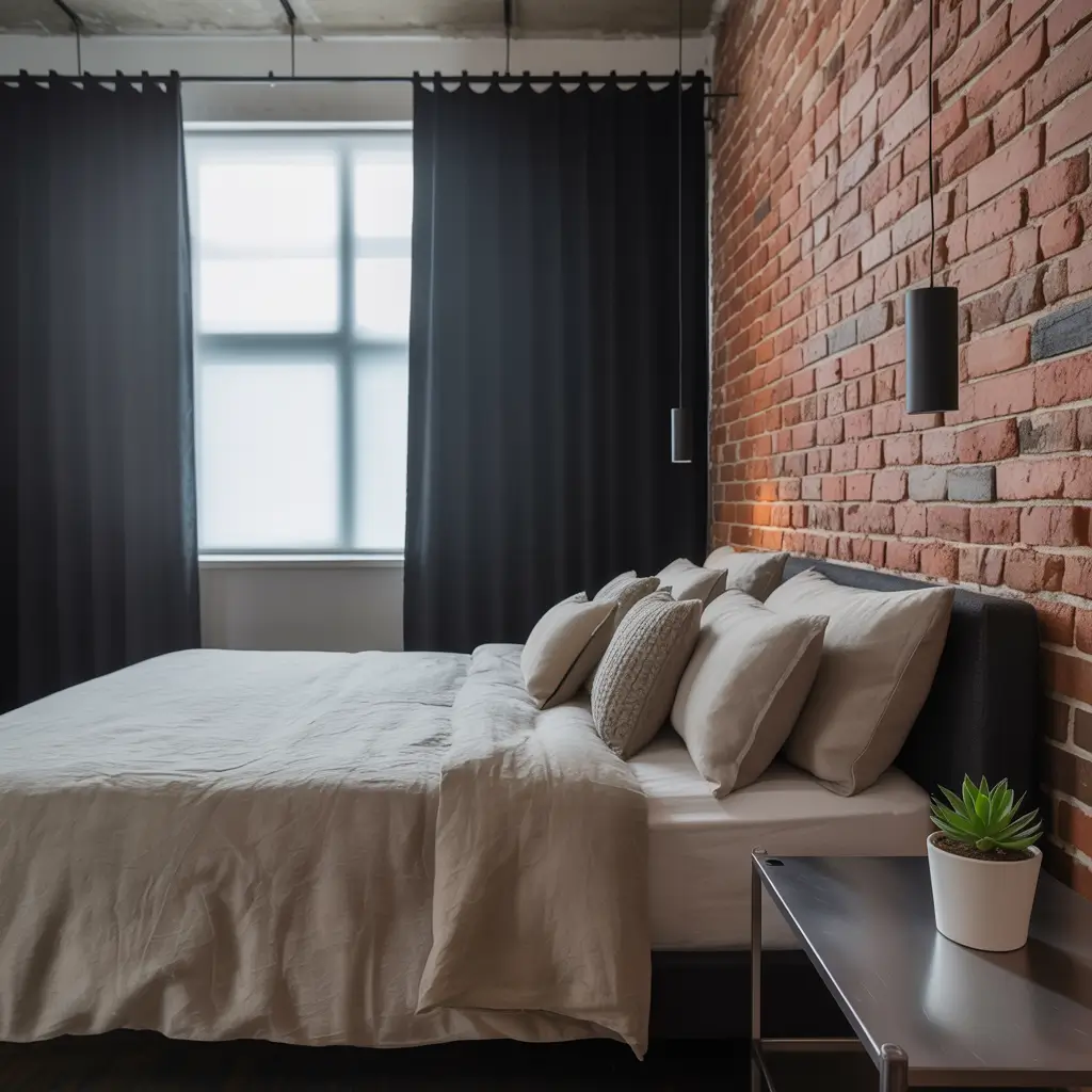 Think exposed brick walls, metal bed frames, and concrete floors. The black curtains soften these hard elements while maintaining that industrial edge. I particularly love using heavy canvas or cotton duck fabric for curtains in industrial spaces – they have that substantial, no-nonsense quality that fits the aesthetic perfectly.