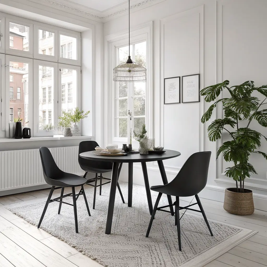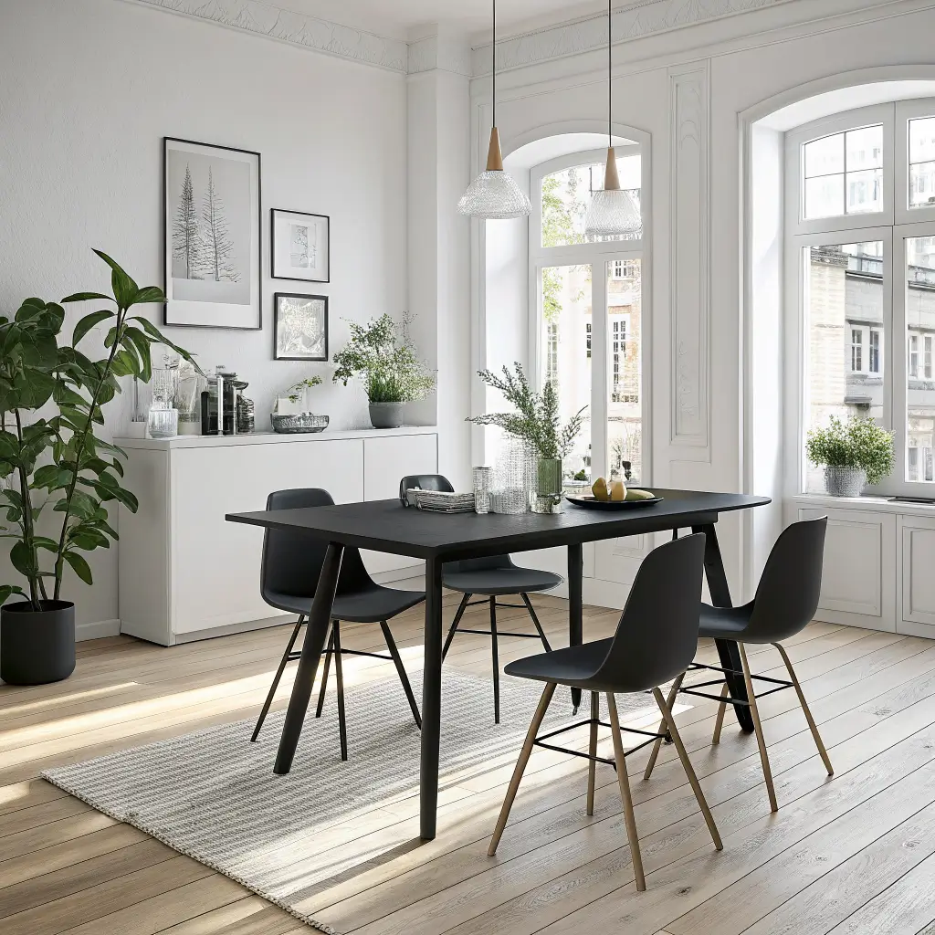 I learned this approach from studying Japanese dining aesthetics. Start with a simple black tableโno ornate legs or decorative edges. Surround it with low-profile chairs in natural wood or white. The key? Negative space becomes your best friend.