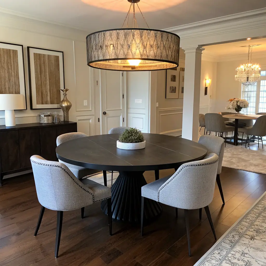 The circular shape softens black’s potential severity. I noticed this when switching from rectangular to round; suddenly, my dining room felt friendlier, more inviting. The curves create better flow, especially in square rooms where rectangular tables can feel rigid.