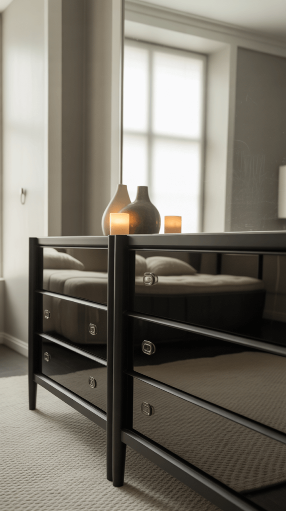 • Reflective Surfaces are Magic: Place your dresser opposite or adjacent to a window. The natural light will bounce off its surface. Even better, choose a dresser with a glossy finish—it will act like a dark mirror, adding depth and light to the room.