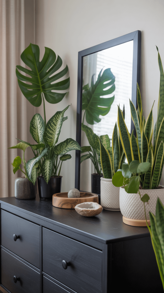 • Trailing Plants: A pothos or philodendron cascading down the side of a tall dresser adds movement and softness.