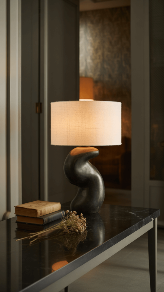- The Core Idea: Select a table lamp that doubles as a piece of art. Its shape, color, and texture will contribute to the decor even when it’s turned off.
