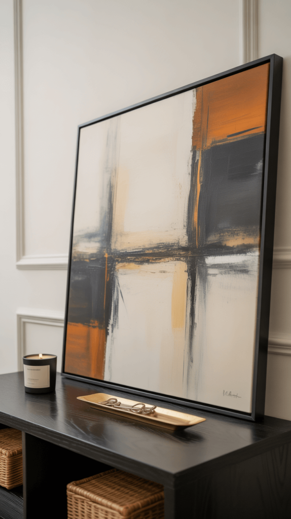 - The Core Idea: Choose a larger piece of art—a painting, a print, even a textile—and simply lean it against the wall at the back of your table. Layer smaller items in front of it.