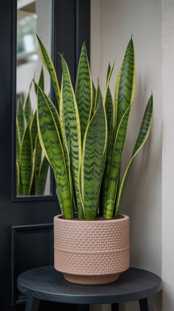 - A Snake Plant (Sansevieria): Architectural, nearly impossible to kill, and thrives in low light. A perfect entryway buddy.
