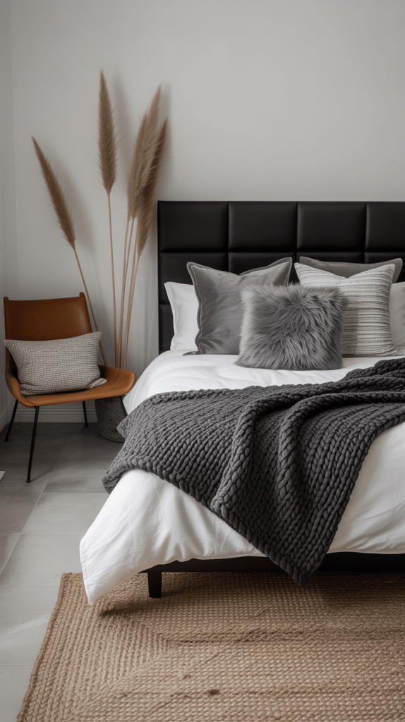 12. Monochrome Bedroom with Cozy Textures