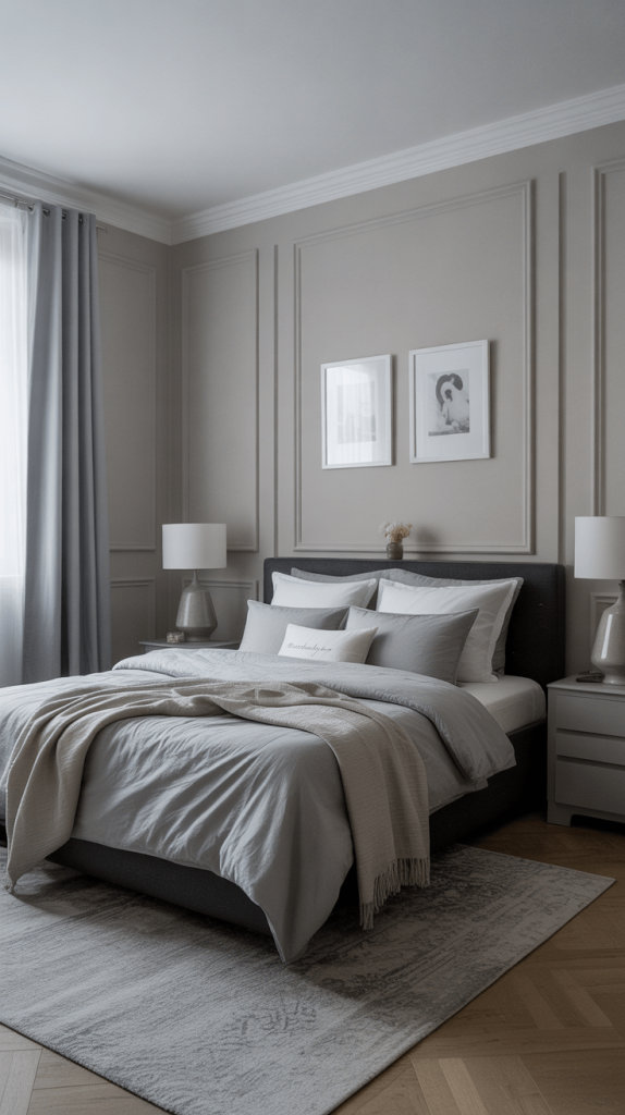 2. Cozy Monochrome Bedroom with Grey Accents