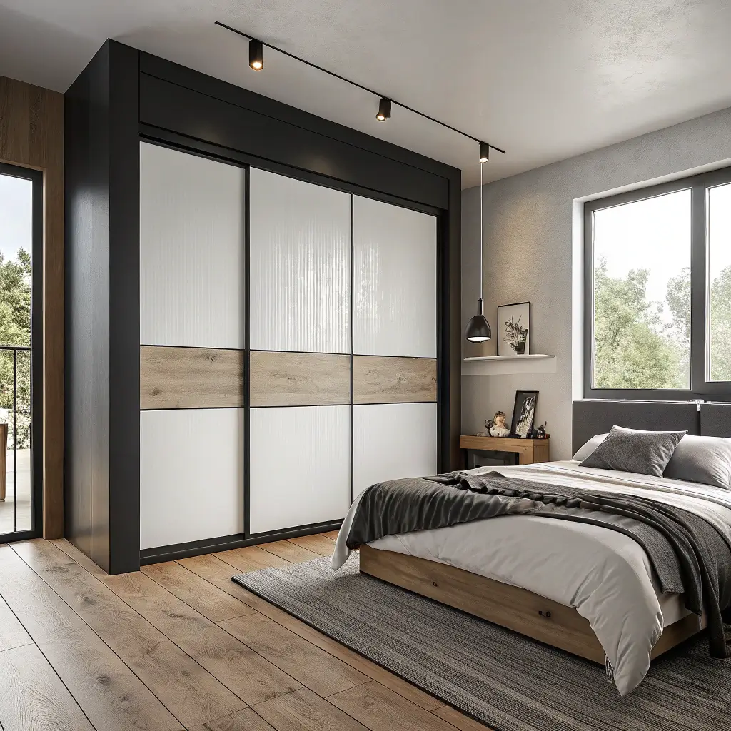 Here’s where things get interesting. Matte black sliding doors with white panels create this incredible visual depth that makes your bedroom look twice its size. I installed these in my master bedroom last year, and everyone who walks in asks if I knocked down a wall.