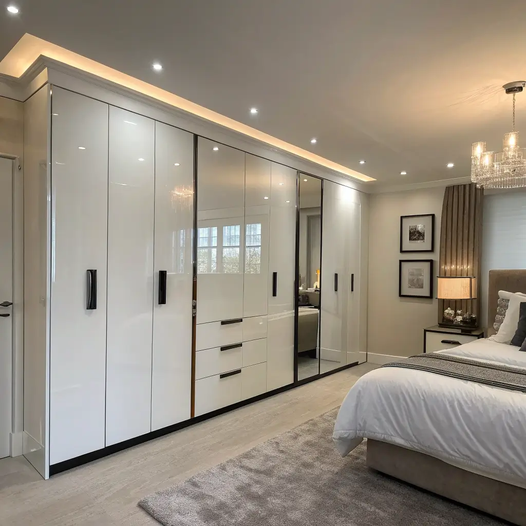 Go big or go home, right? Floor-to-ceiling wardrobes in black and white create this incredible architectural statement that basically becomes the room’s focal point. I’m talking about wardrobes that make you forget there’s even a wall behind them.