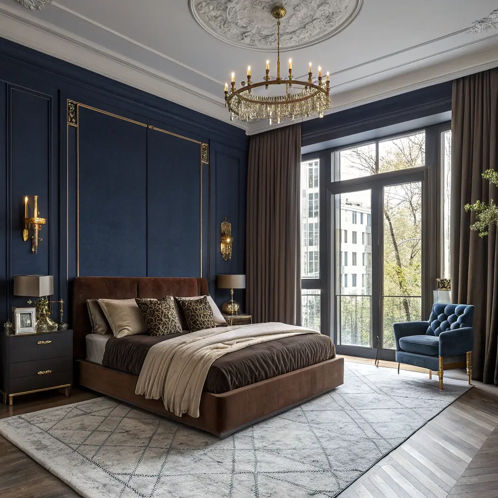 Ready to feel like royalty every night? An elegant navy and chocolate bedroom delivers that five-star hotel vibe without the ridiculous room service prices. This combination screams sophistication – think deep navy walls paired with rich chocolate brown furniture and gold accents that catch the light just right.