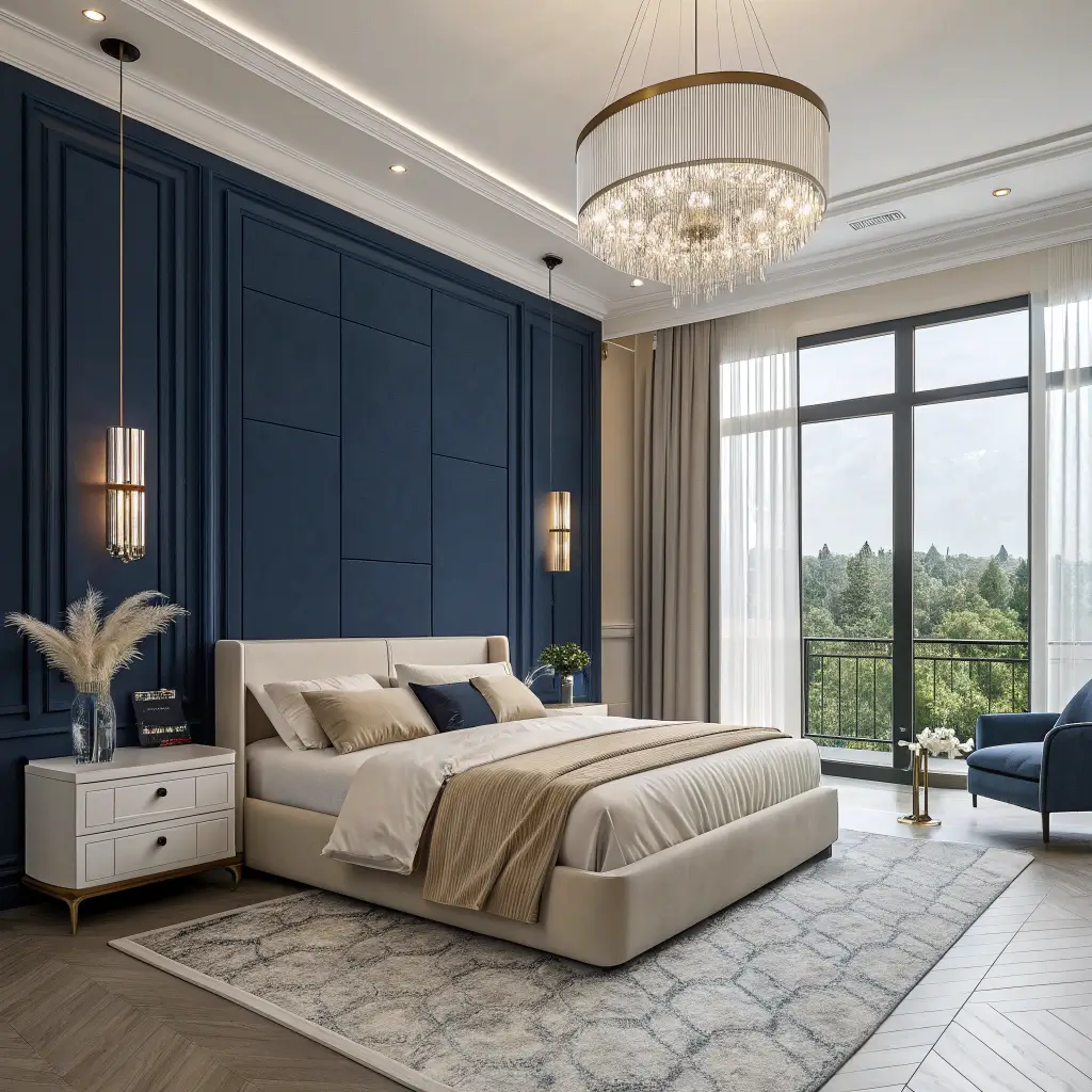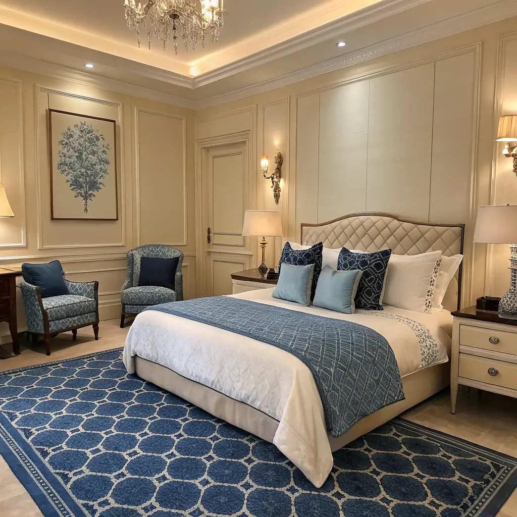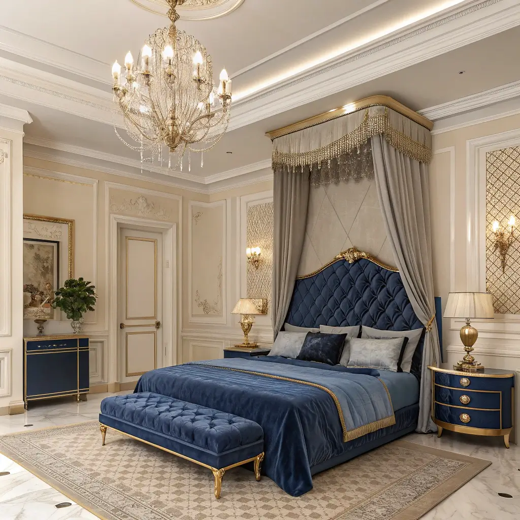 Luxurious Royal Blue and Cream Bedroom