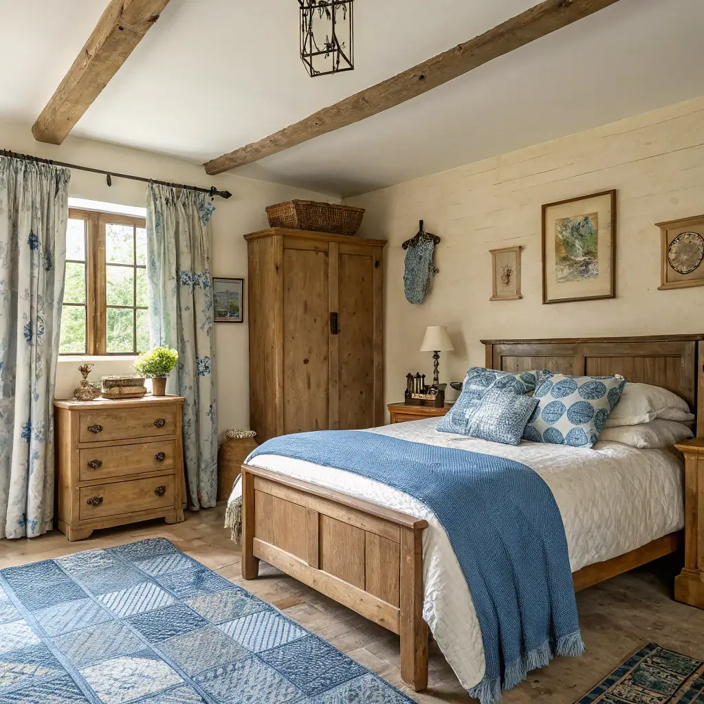 Rustic Blue and Cream Farmhouse Bedroom
