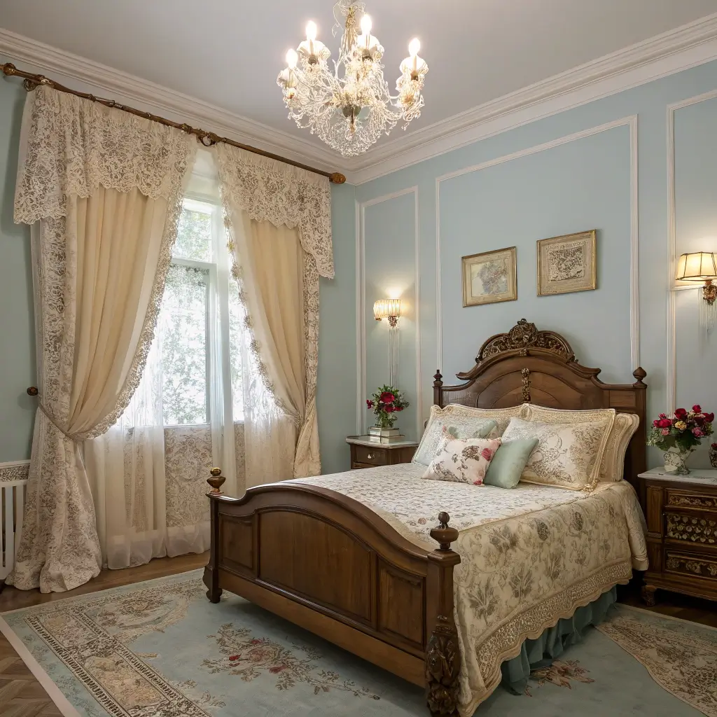Texture elevates everything here. Velvet blue pillows, cream silk curtains, maybe a plush cream area rug your feet sink into. Each element should feel as good as it looks. This is your bedroom, not a museum – touch everything!