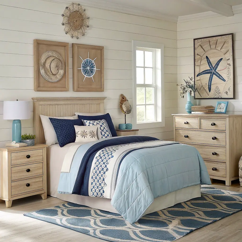 Nautical Blue and Cream Coastal Bedroom