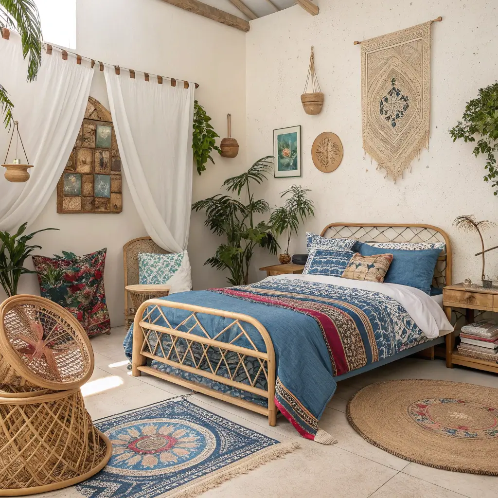 Boho Blue and Cream Eclectic Bedroom