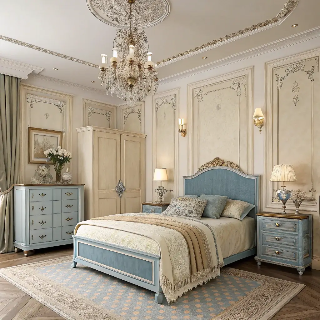 Classic Cream Bedroom with Blue Furniture