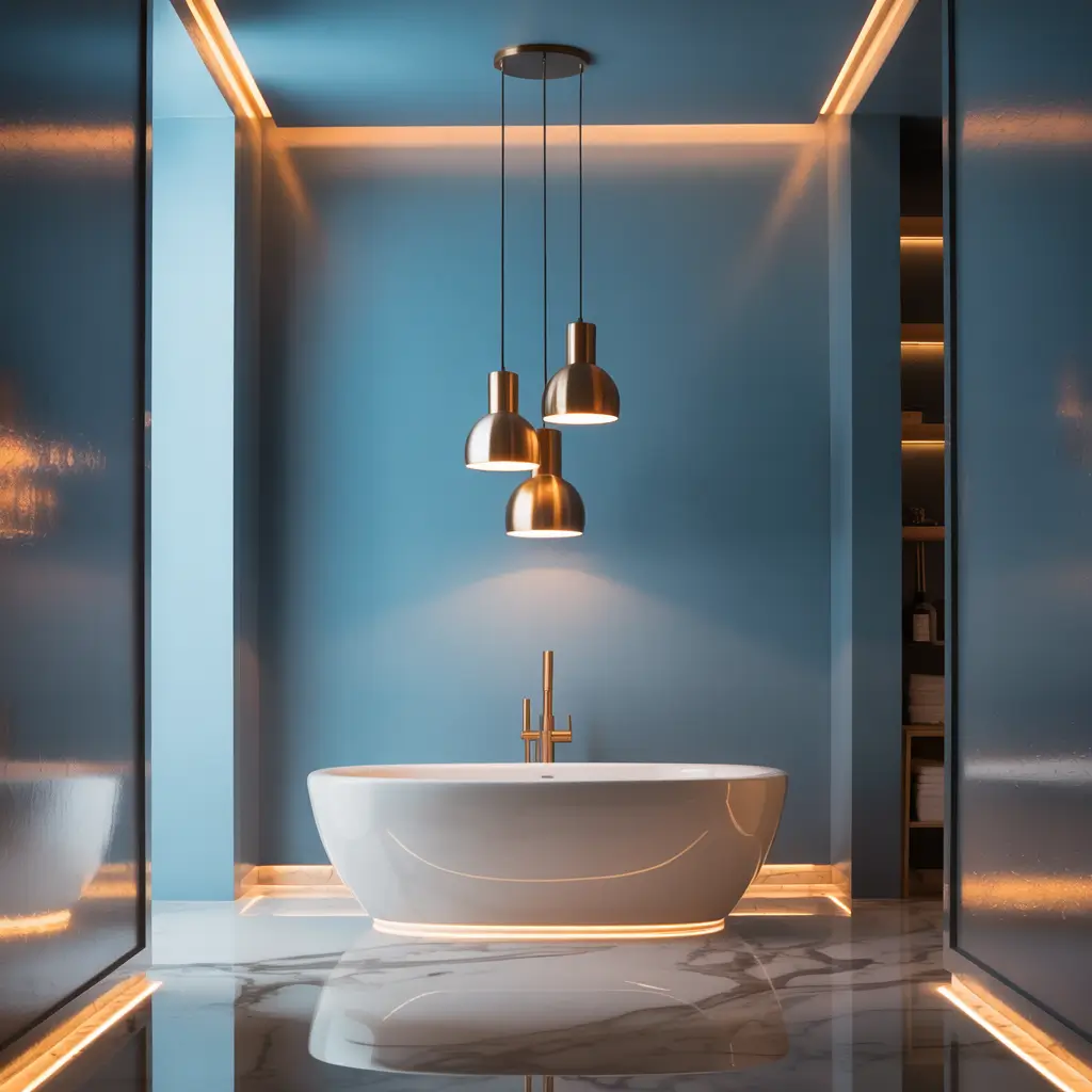 Natural light makes navy sing, but what about those windowless bathrooms? Here’s where you get strategic with your lighting placement. Install warm-toned LED bulbs (around 2700K-3000K) to bring out the gold’s warmth and prevent the navy from looking black.