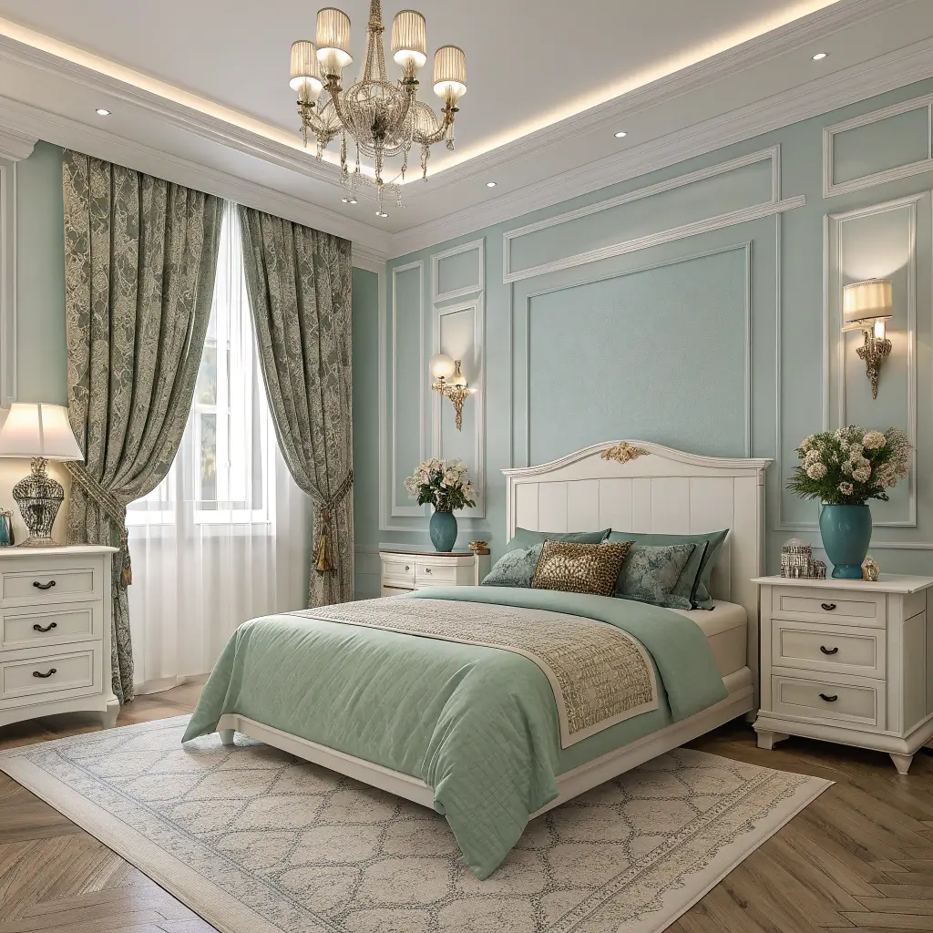 Elegant Blue and Sage Green Bedroom