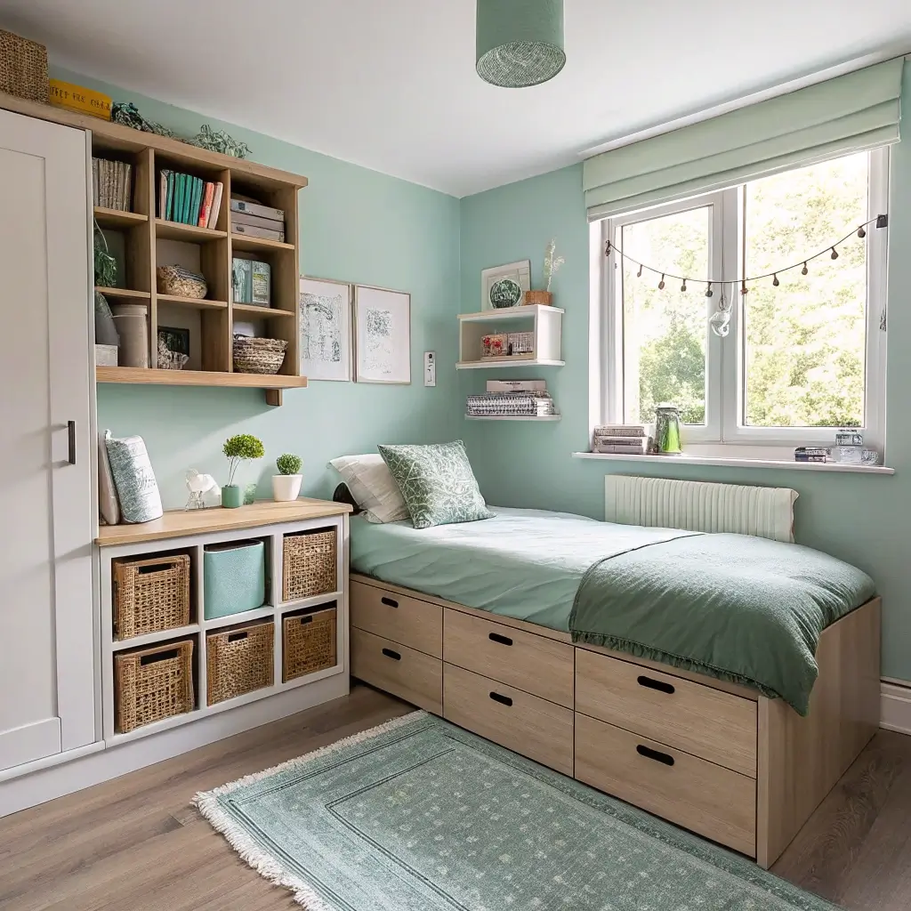 Small Space Blue and Green Bedroom Ideas