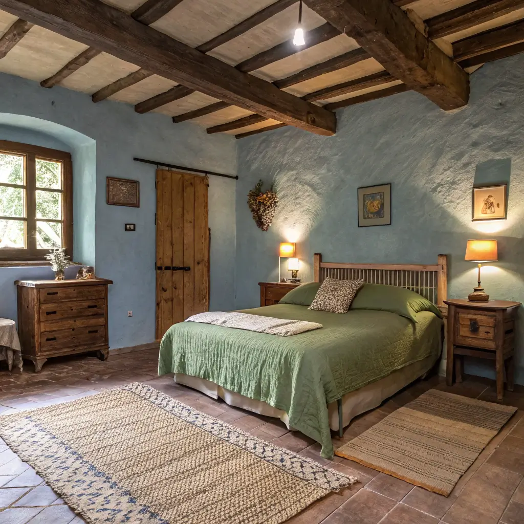 Cozy Rustic Blue and Green Bedroom