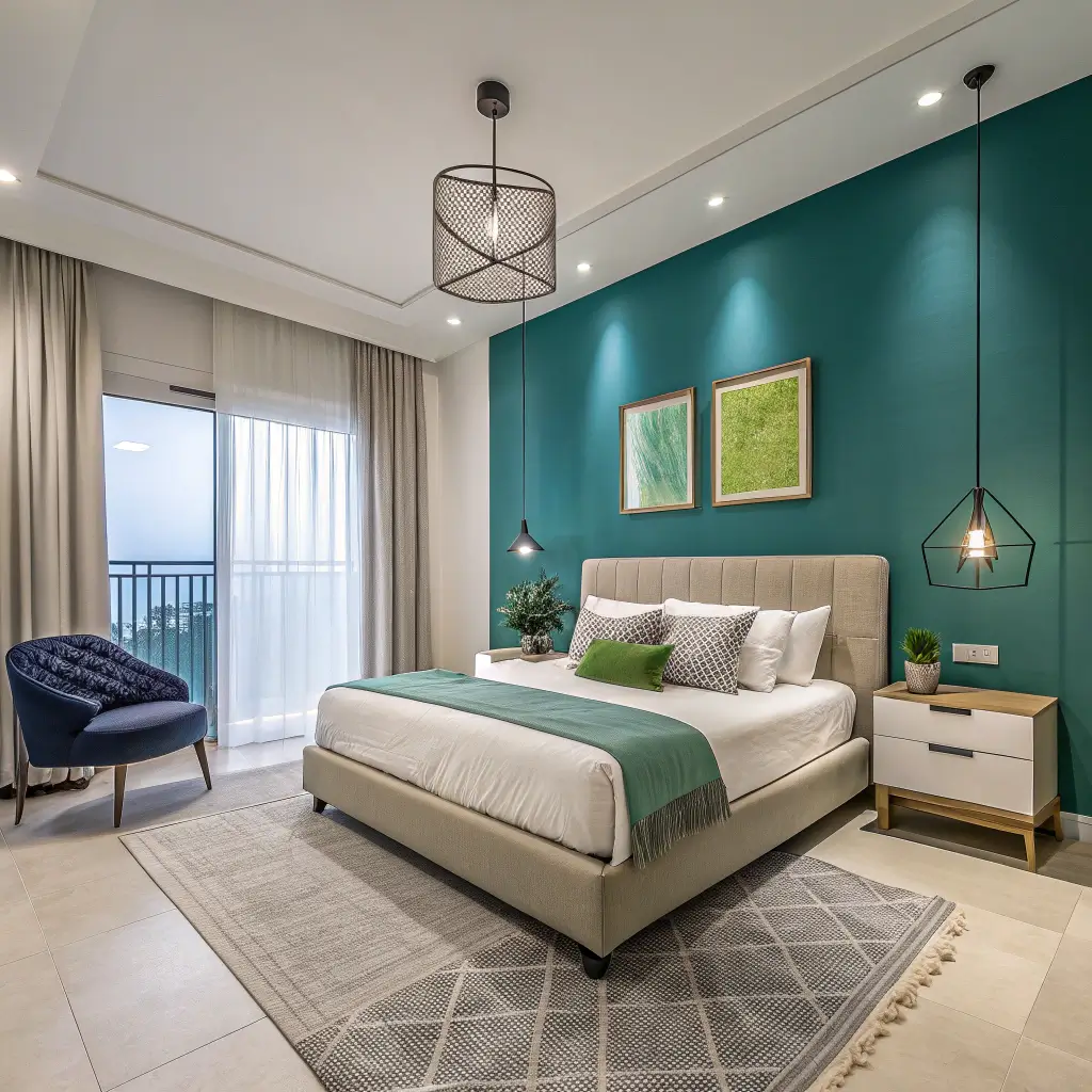 Modern Minimalist Blue and Green Bedroom