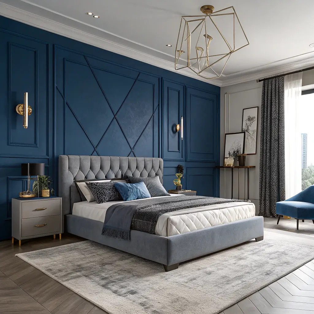 Accent walls – you either love them or think they’re stuck in 2010. Personally? I’m team accent wall, especially when we’re talking about blue. Creating a bold navy or deep blue accent wall behind your bed instantly transforms your bedroom from “meh” to “magazine-worthy.”