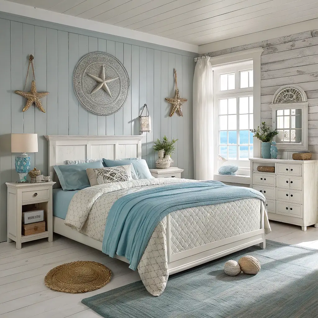 Coastal Inspired Blue and Grey Bedroom