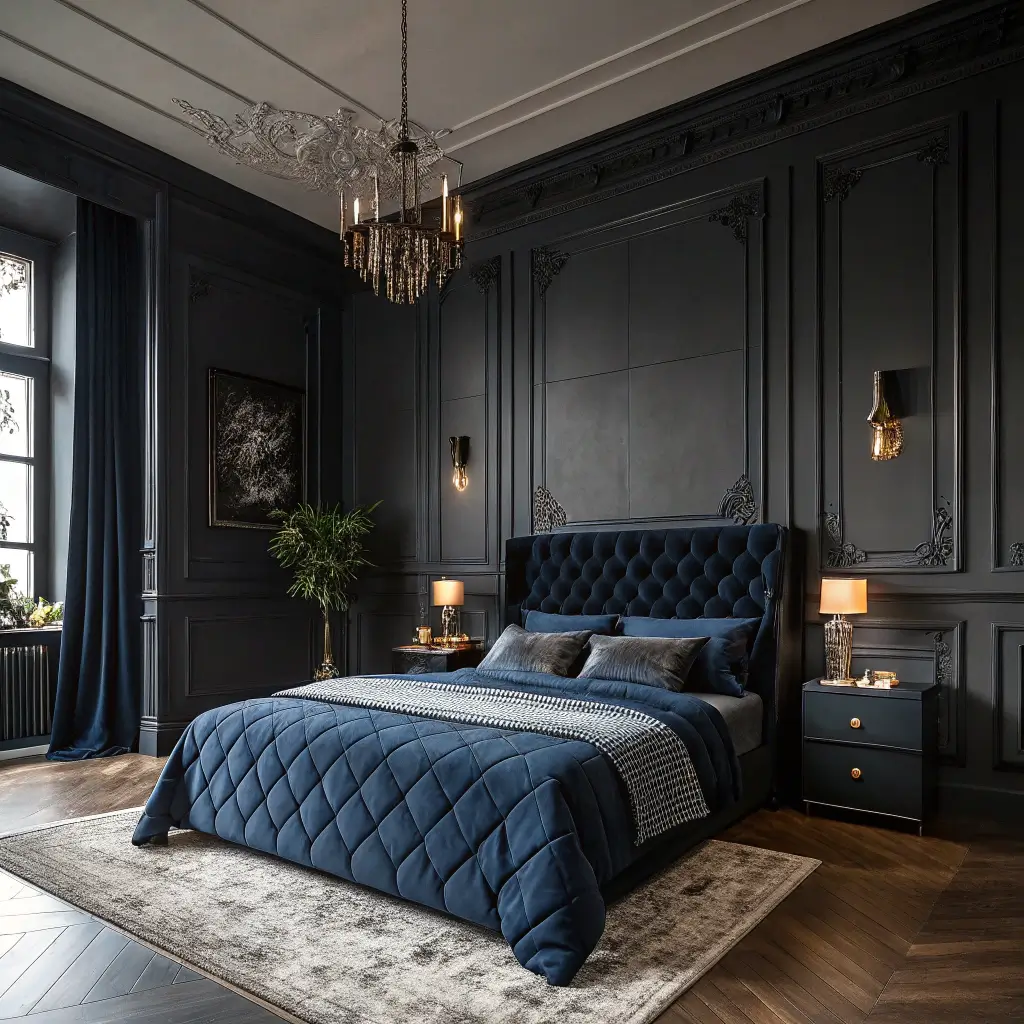 Moody Blue and Charcoal Grey Bedroom